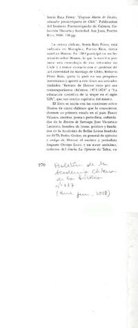 Materias: Autoras chilenas - Hostos, Eugenio María de - Autores puertorriqueños - Ruiz Pérez, Sonia - Eugenio María de Hostos