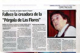 Fallece la creadora de la Pérgola de las flores [artículo] La Estrella (Diario : Arica, Chile)-- feb. 27, 2011, p. 35 .