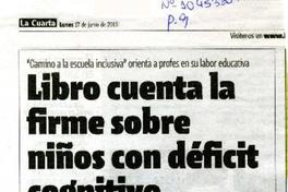 Libro cuenta la firme sobre niños con déficit cognitivo [artículo] / Manuel Arévalo Bórquez. La Cuarta (Diario: Santiago, Chile)-- jun. 17, 2013, p. 9 .