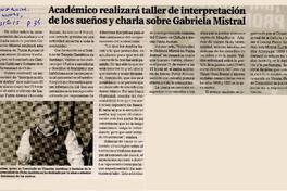 Académico realizará taller de interpretación de los sueños y charla sobre Gabriela Mistral [artículo] / .