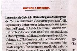 Los restos de Gabriela Mistral llegan a Montealegre [artículo] VVD