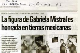 La figura de Gabriela Mistral es honrada en tierras mexicanas [artículo] / Rodrigo Solís A. El Día (Diario : La Serena, Chile)-- nov. 30, 2012, p. 3. .