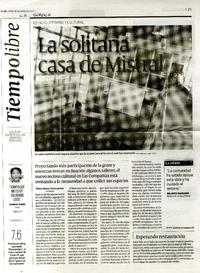 La solitaria casa de Mistral [artículo] / Eliana Bravo Portocarrero. El Día (Diario : La Serena, Chile)-- mar. 10, 2011, p. 21. .