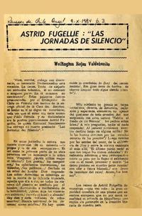 Astrid Fugellie: "Las jornadas del silencio" [artículo] / Wellington Rojas Valdebenito. Renacer de Chile (Diario : Angol, Chile)-- oct. 9, 1984, p. 3. .