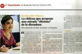 La chilena que propone una mirada "distinta" de la dictadura. [artículo] La Segunda (Diario : Santiago, Chile)-- feb. 18, 2015, p. 22. .