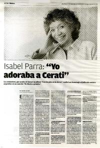 Isabel Parra: "yo adoraba a Cerati" [entrevista] [artículo] / Amelia Carvallo. El Mercurio (Diario : Valparaíso, Chile)-- ene. 4, 2015, p. 16 (suplemento "KU") .