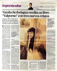 Natalia Berbelagua reedita su libro "valporno" con tres nuevos relatos [entrevista]. [artículo] El Mercurio (Diario : Valparaíso, Chile)-- ene. 2, 2015, p. 26 (suplemento "KU") .
