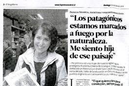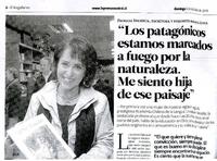 Los patagonicos estamos marcados a fuego por la naturaleza. Me siento hija de ese paisaje [artículo] El Magallanes (Diario : Punta Arenas, Chile) oct. 5, 2014, p. 2-3 .