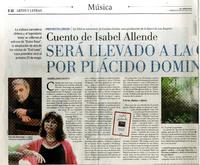 Cuento de Isabel Allende será llevado a la ópera por Plácido Domingo [artículo] Maureen Lennon Zaninovic.