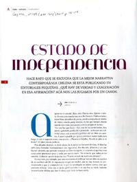 Estado de independencia [artículo] / Francisco Ortega. Capital (Revista : Santiago, Chile)-- no 379 (ago.-sept. 2014), p. 110-114. .