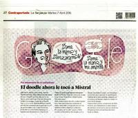 El doodle ahora le tocó a Mistral. [artículo] La Segunda (Diario : Santiago, Chile)-- abr. 7, 2015, p. 32. .