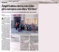 Ángel Lattus cierra con éxito gira europea con obra "El otro". [artículo] El Mercurio (Diario : Antofagasta, Chile)-- mayo 12, 2015, p. 27. .