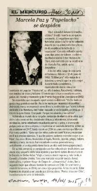 Marcela Paz y "Papelucho" se despiden. [artículo] El Mercurio (Diario : Santiago, Chile)-- jun. 14, 2015, p. 18. .