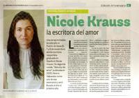 Nicole Krauss la escritora del amor. [artículo] El Mercurio (Diario : Valparaíso, Chile)-- septiembre 12, 2015, página 55 ("Edición Aniversario") .