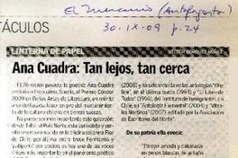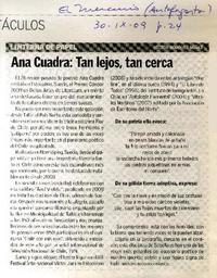Ana Cuadra: tan lejos, tan cerca [artículo] / Víctor Bórquez Núñez. El Mercurio (Diario : Antofagasta, Chile)-- septiembre 30, 2009, página 24. .
