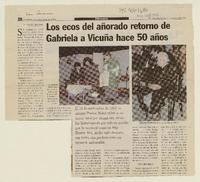 Los ecos del añorado retorno de Gabriela a Vicuña hace 50 años [artículo] / Armando Tapia Cortés. El Día (Diario : La Serena, Chile)-- oct. 3, 2004, p. 28-29. .