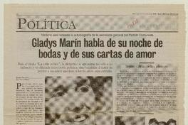 Gladys Marín habla de su noche de bodas y de sus cartas de amor mañana será lanzada la autobiografía de la secretaria general del Partido Comunista / [artículo] : Giglia Vaccani [y] Guillermo Muñoz. Las Últimas Noticias (Diario : Santiago, Chile)-- oct. 9, 2002, p. 12. retr. .