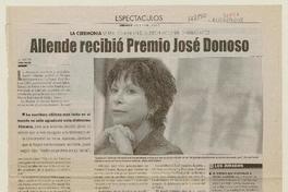 Allende recibió Premio José Donoso. [artículo]