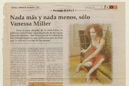 Nada más y nada menos, sólo Vanessa Miller : [entrevistas] [artículo] (Diario : Santiago, Chile)-- nov. 28, 2003, p. 7. retr. .
