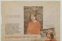 La interrogante de ser mujer: [entrevista] [artículo] / Olga Araya Céspedes. El Mercurio (Santiago, Chile)-- jul. 3, 1984, p. 17 (suplemento "Ya") retr. .