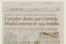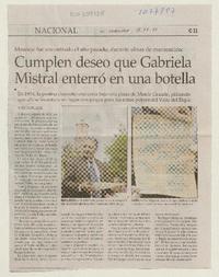 Cumplen deseo que Gabriela Mistral enterró en una botella [artículo] Matías Rovano Bustos.