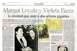 Margot Loyola y Violeta Parra: la amistad que unió a dos artistas gigantes [artículo] / Romina de la Sotta Donoso. El Mercurio (Diario : Santiago, Chile)-- sept. 21, 2019, p. A12. .