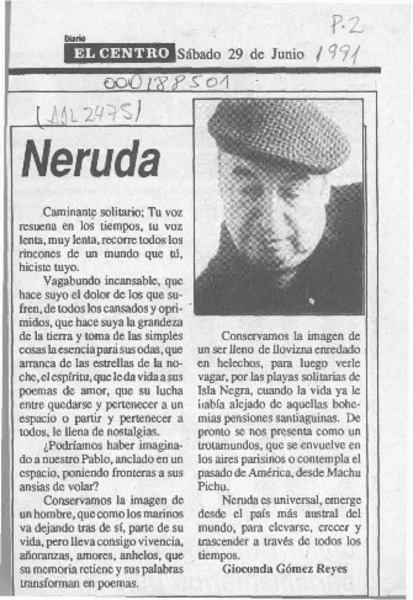 Neruda  [artículo] Gioconda Gómez Reyes.