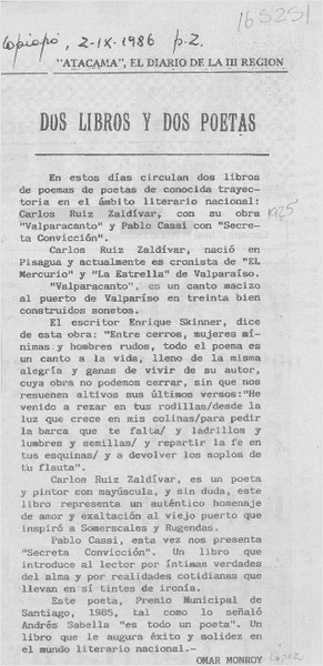 Dos libros y dos poetas [artículo] Omar Monroy.