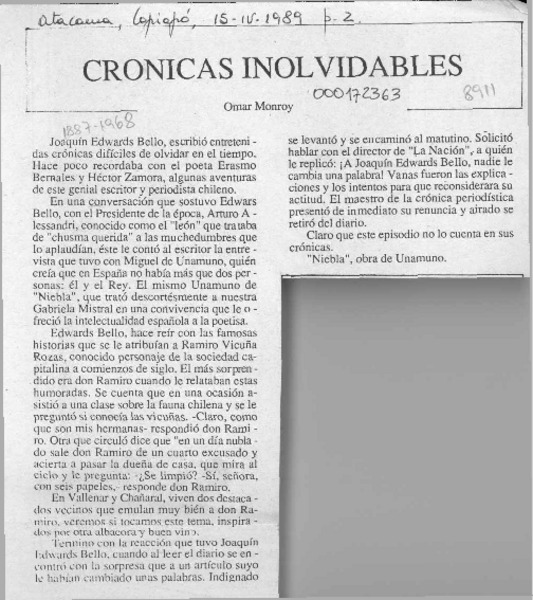 Un escritor atacameño que rompe el centralismo literario [artículo] Omar Monroy.