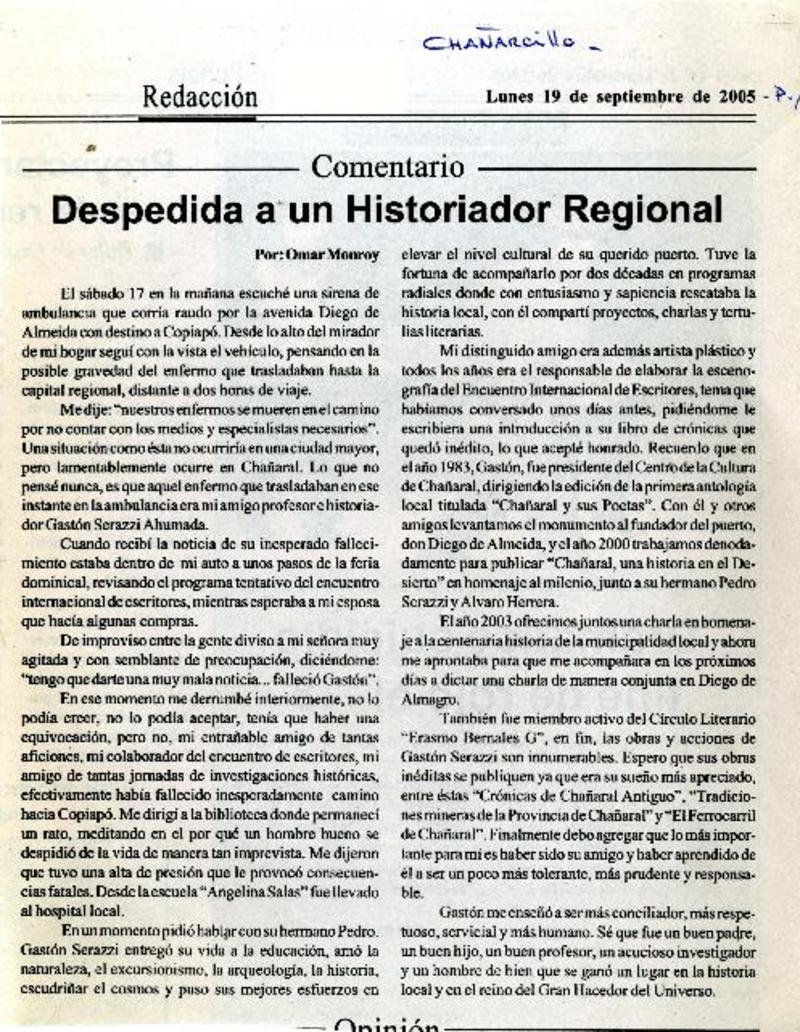 "Recuerdos y vivencias de Copiapó" [artículo] Omar Monroy.