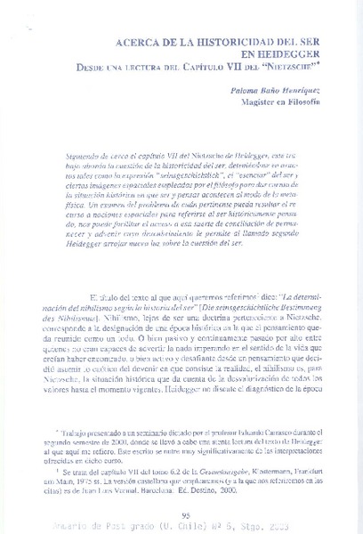 Acerca de la historicidad del ser en Heidegger [artículo] Paloma Baño Henríquez.