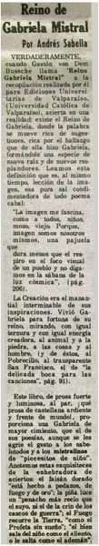 Gabriela Mistral "Reino" [artículo] Eduardo Godoy Gallardo.
