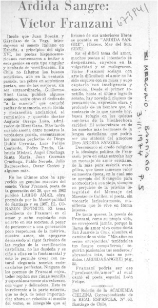 Víctor Franzani: "Ardida sangre" [artículo] Hernán del Solar.