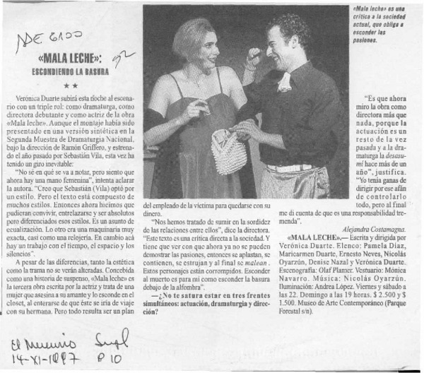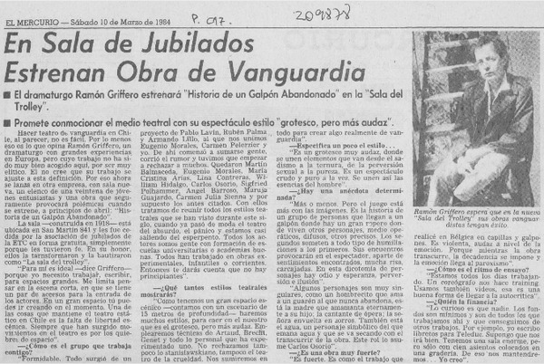 En sala de jubilados estrenan obra de vanguardia : [entrevista] [artículo].
