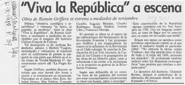 "Viva la República", nuevo montaje de Griffero [artículo].