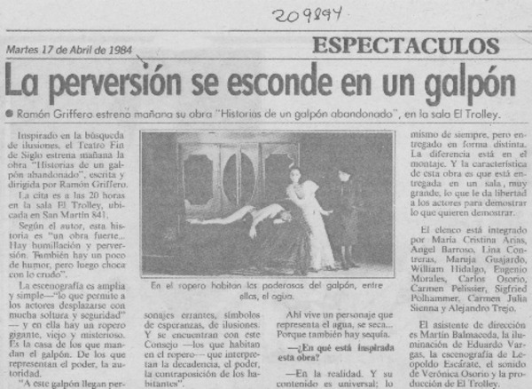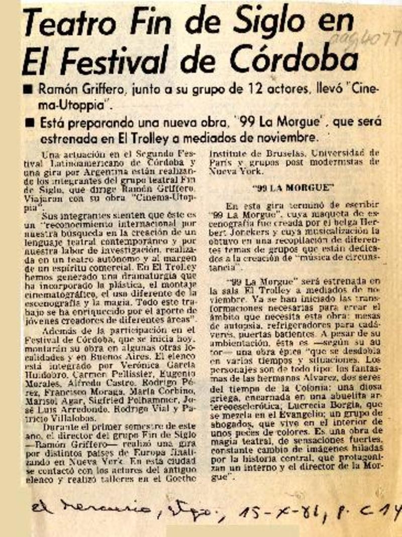 Teatro vanguardista de Griffero otra vez a escena [artículo].