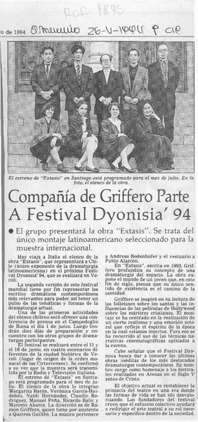 Compañía de Griffero parte a festival Dyonisia '94  [artículo].