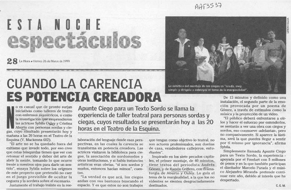 Apuntes, teatro con discapacitados [artículo] Leopldo Pulgar I.