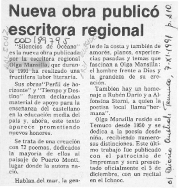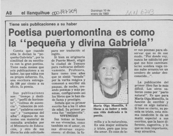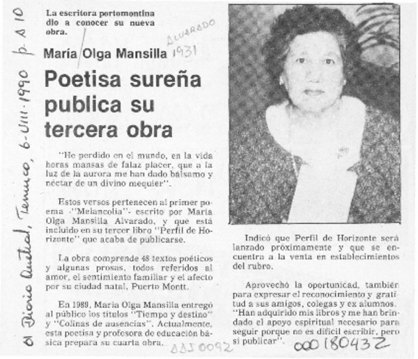 María Olga Mansillla [artículo] Marino Muñoz Lagos