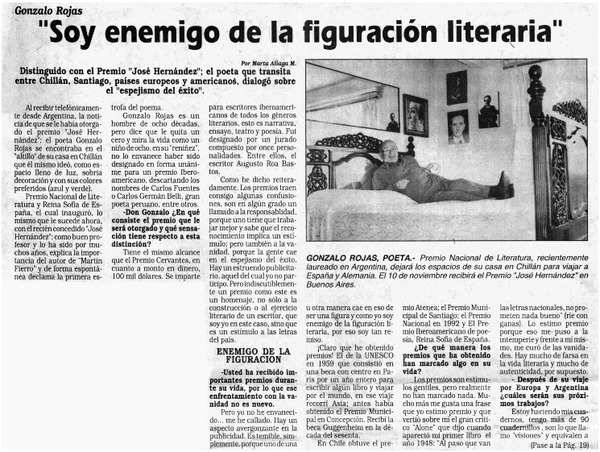 Gonzalo Rojas, Premio Nacional de Literatura 1992 [artículo] Marcelo Pellegrini.