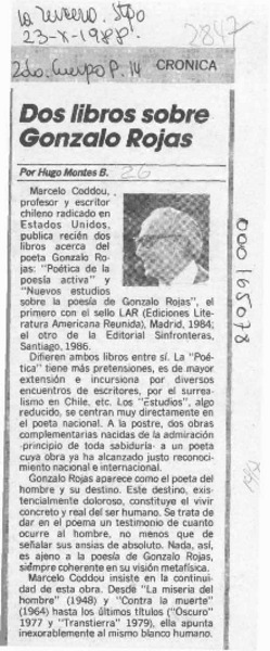Dos libros sobre Gonzalo Rojas [artículo] Hugo Montes B.