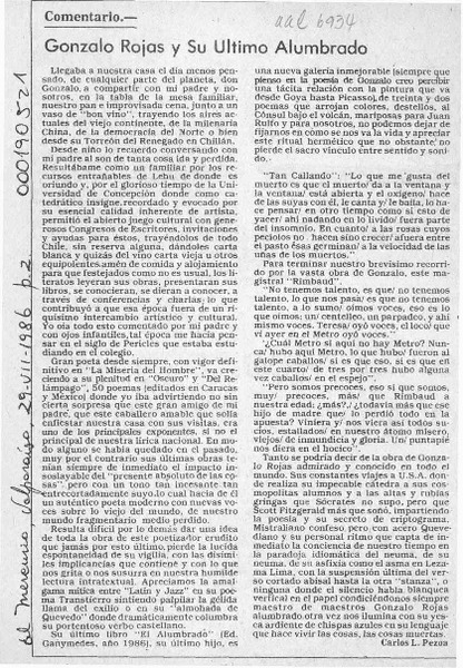 Gonzalo Rojas y su último alumbrado [artículo] Carlos L. Pezoa.