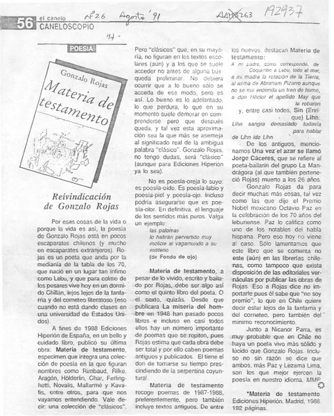 Reivindicación de Gonzalo Rojas [artículo] M. M. P.