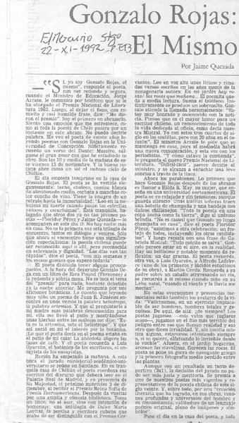 Gonzalo Rojas, el mismo [artículo] Jaime Quezada.