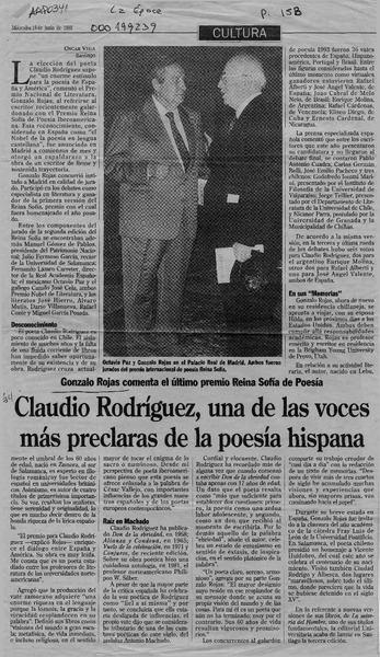 Claudio Rodríguez, una de las voces más preclaras de la poesía histapana [artículo] Oscar Vega.