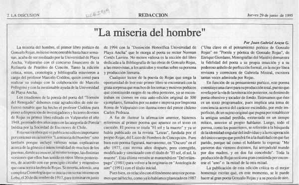 "La miseria del hombre" [artículo] Juan Gabriel Araya G.
