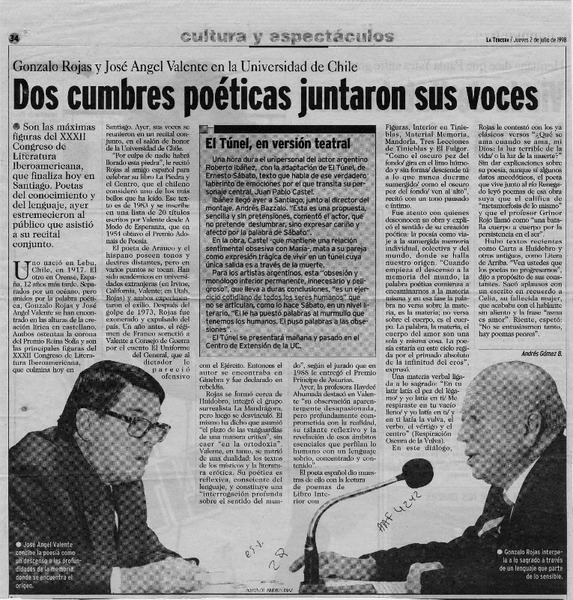 Dos cumbres poéticas juntaron sus voces [artículo] Andrés Gómez B.