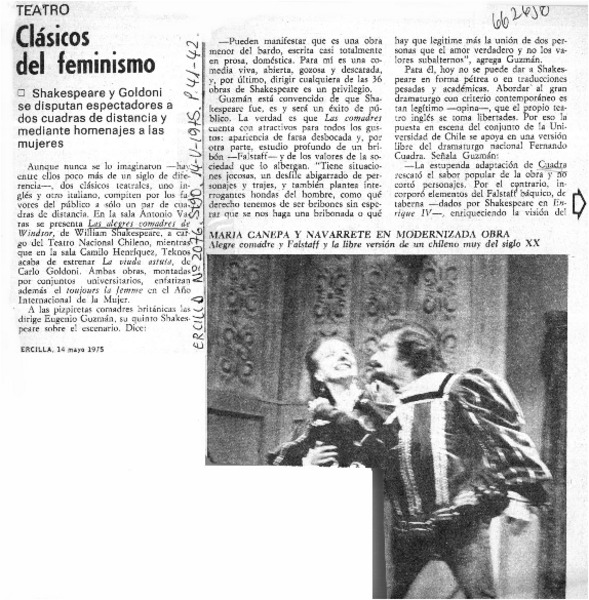 Dos alegres comadres elevan calidad de espectáculos chilenos [artículo] Jorge Marchant.