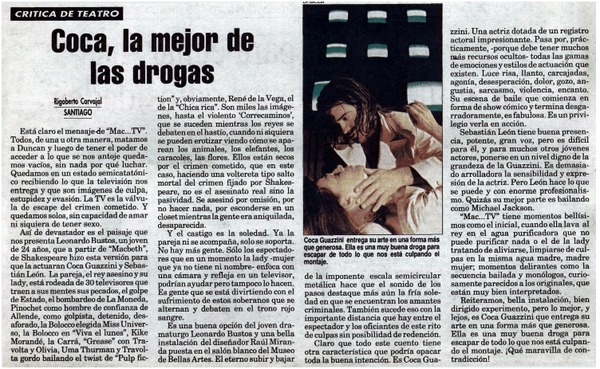 Pareja de actores pone los pelos de punta con su "Hamlet" [artículo] Rigoberto Carvajal.