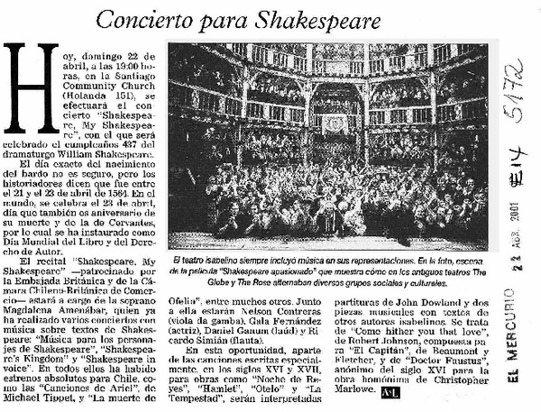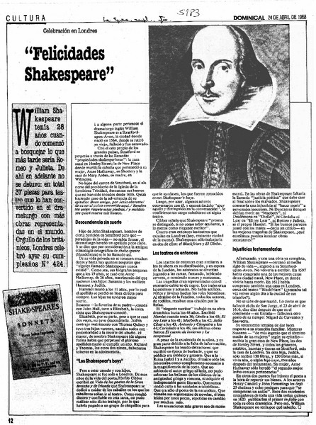 Aniversario de Shakespeare en Stratford [artículo] Fernando Debesa.